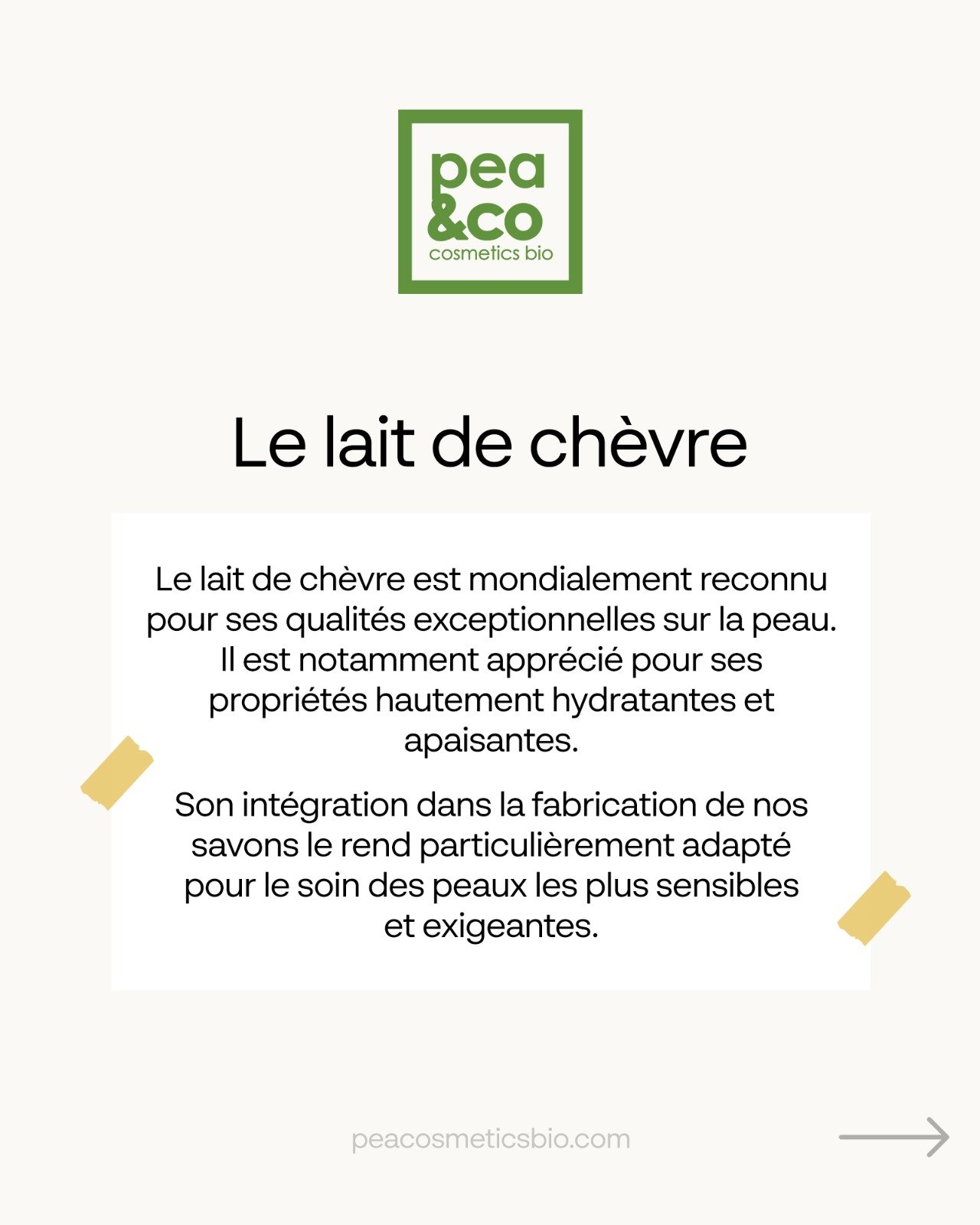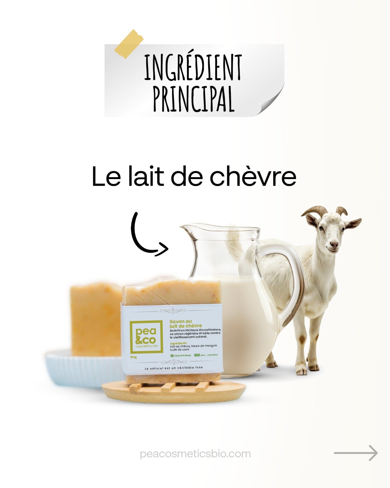 Le savon au Lait de Chèvre Pea & Co est un soin doux et luxueux, fabriqué à partir de lait de chèvre frais et d’ingrédients naturels. Sa mousse fine et crémeuse nettoie la peau en profondeur sans la dessécher. Un savon idéal pour révéler une peau souple, apaisée et visiblement plus lumineuse.